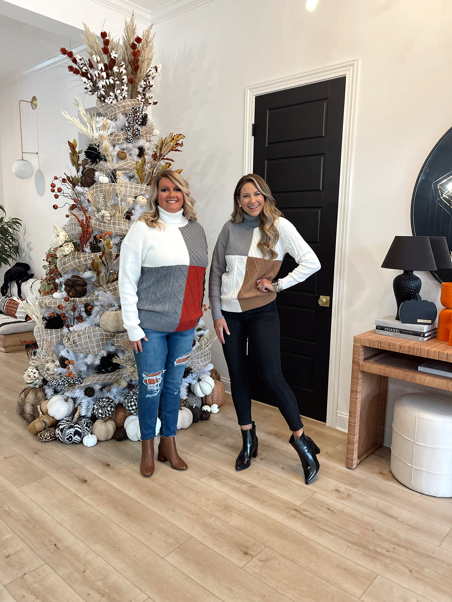 Traci in an XL sweater $32 prime, pants $48 prime, shoes $70 prime