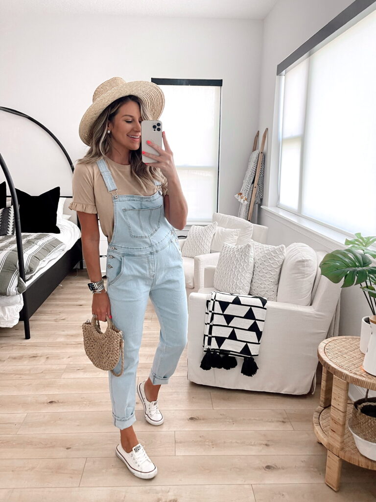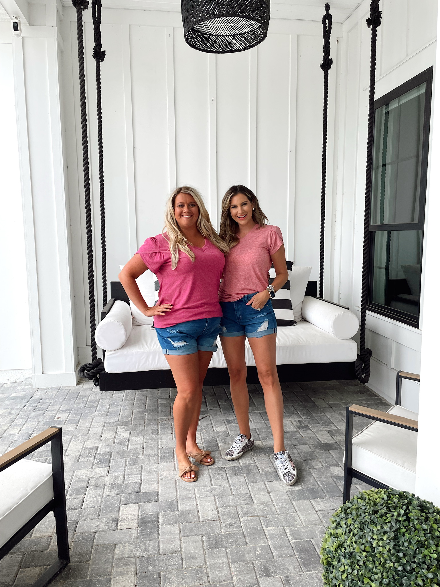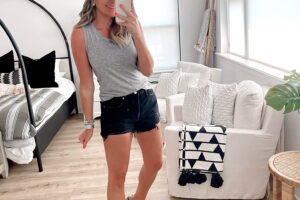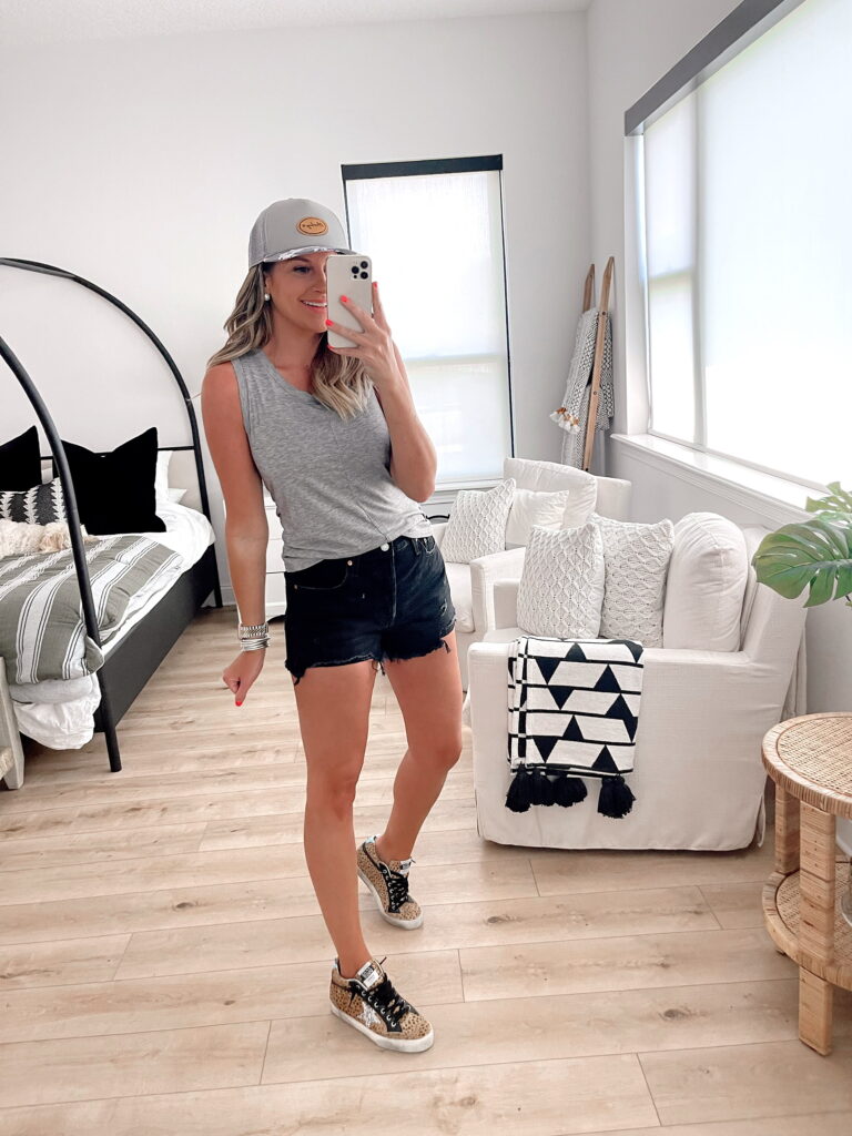 Grey Tank & Black Jean Shorts