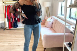 Lace Sleeve Smocked Top