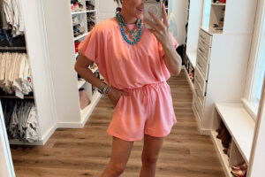 Spring ootd + my new summer mom bag! In a small Ellie nap dress, necklaces, sandals, mesh tote – fits tts. Shop the look here!
