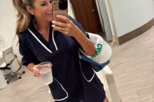 In a medium strapless smocked top maxi, necklace, sandals and accessories- all fits TTS.