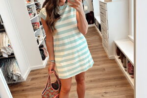 Striped T Shirt Dress In a medium collared stripe dress, slides, tote and accessories- fits tts. Shop the items here! subscribe withBlogLovin' or Email share follow me onLIKETOKNOW:IT