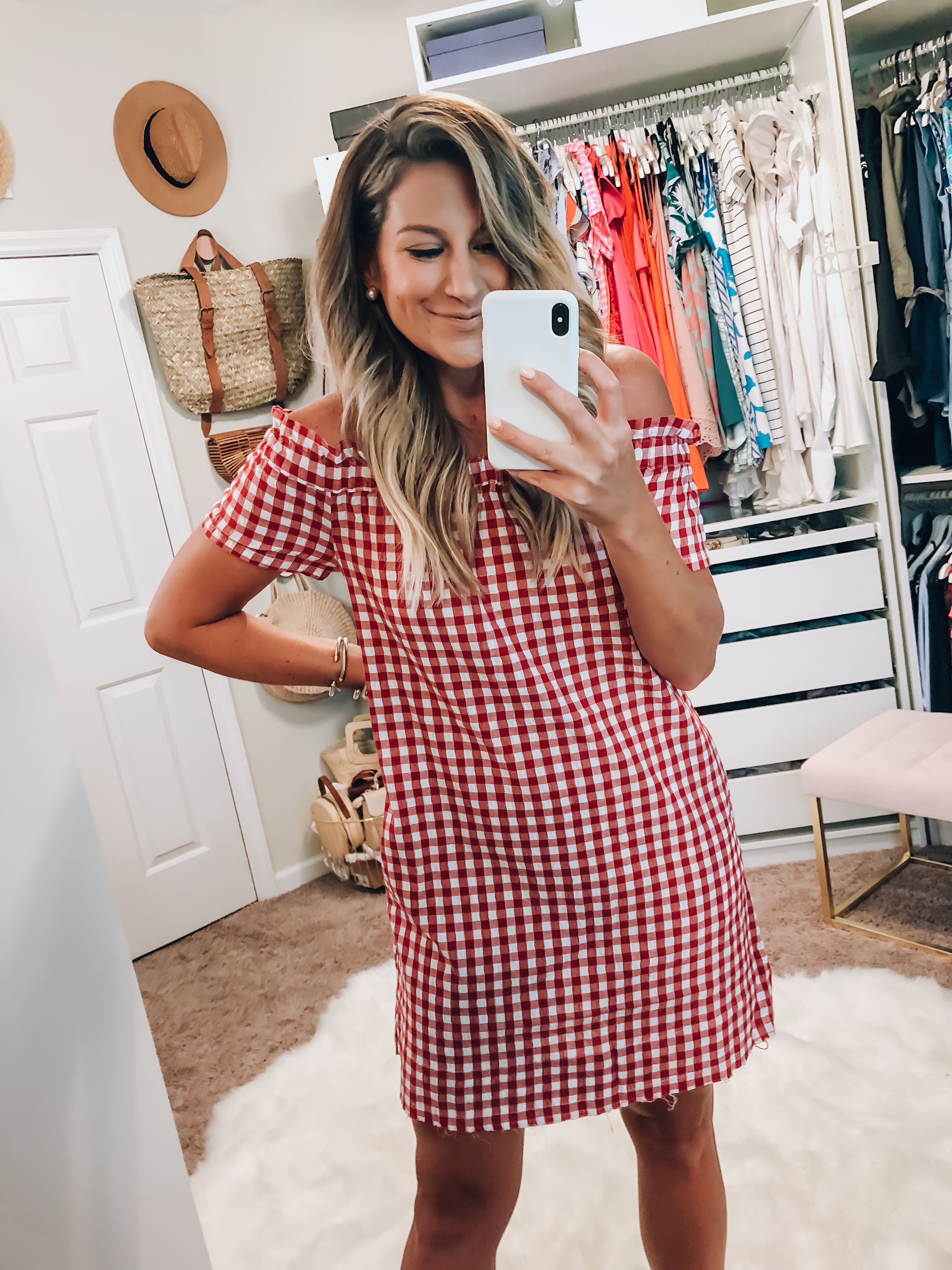 Tryon | Red Gingham Off the shoulder gingham dress (wearing size small, $44, also comes in black & white gingham) subscribe withBlogLovin' or Email share follow me onLIKETOKNOW:IT