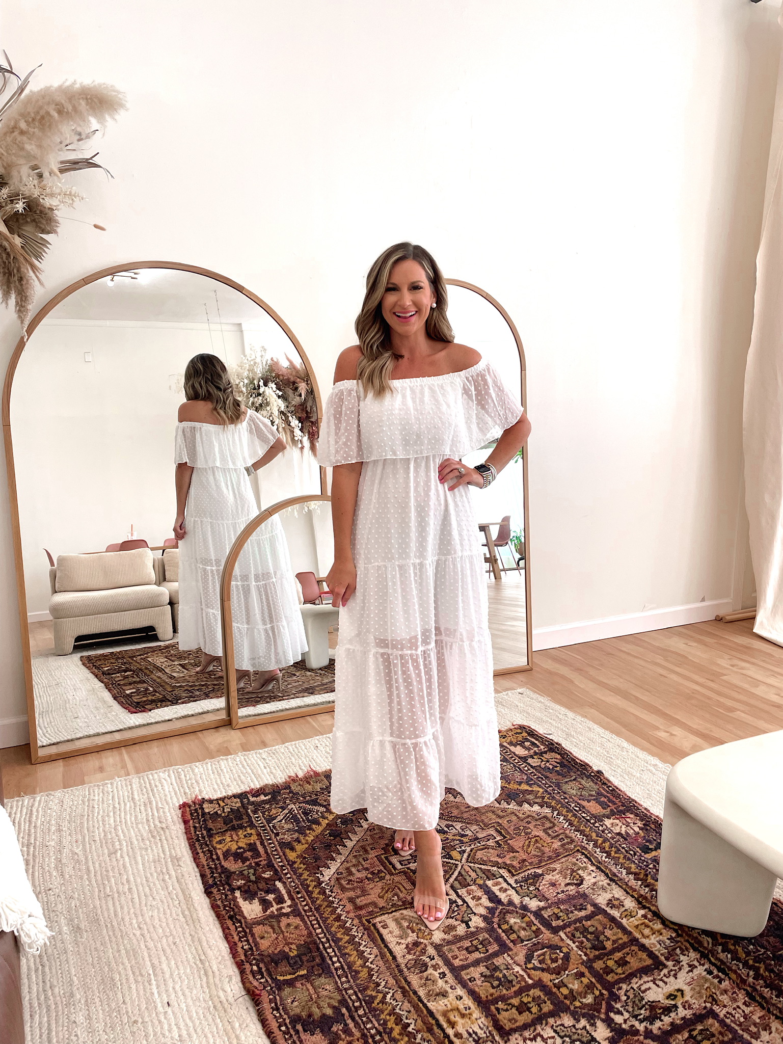 White Lace Bell Sleeve Dress