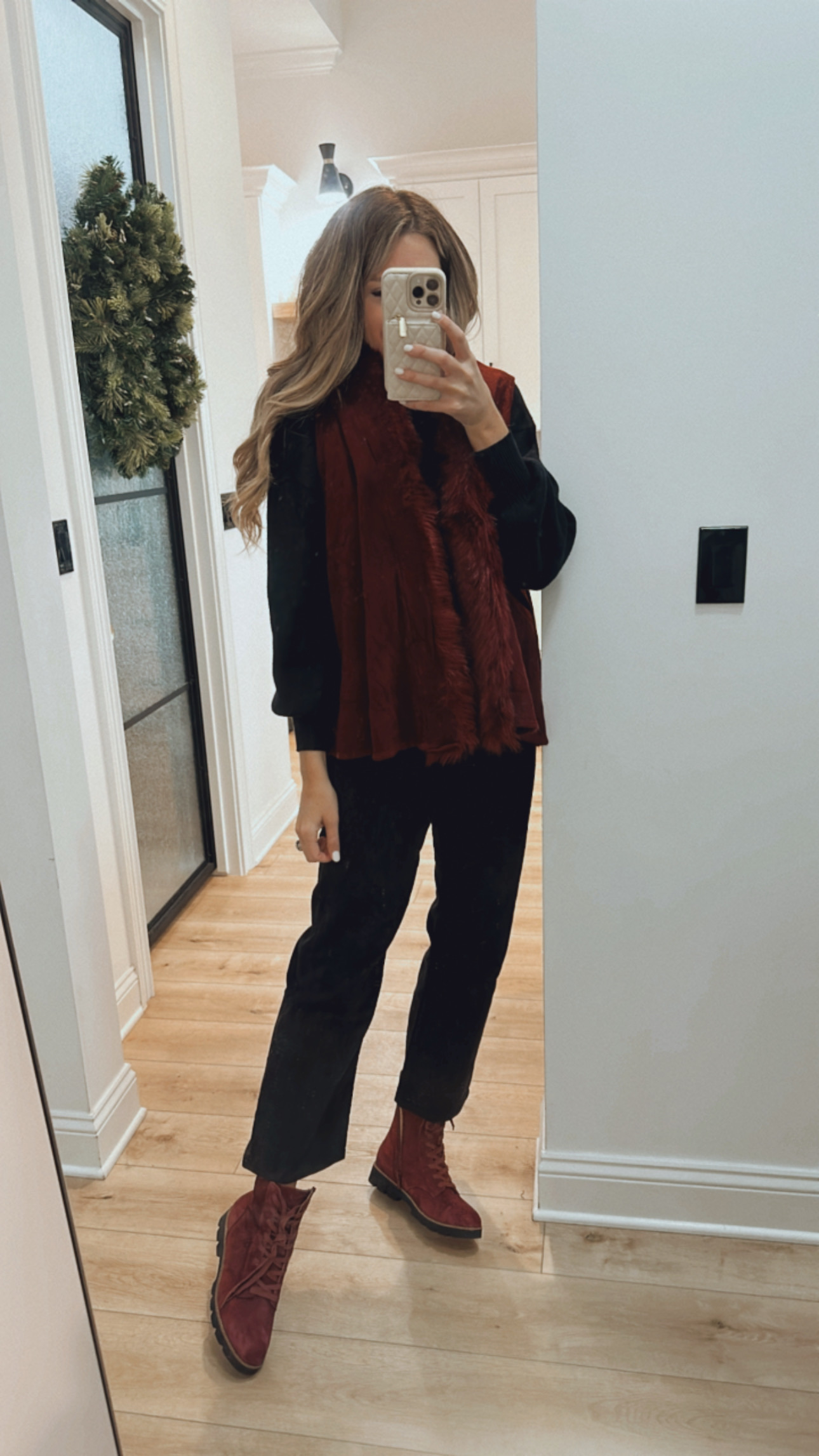 Fur vest. One size – fits TTS. $53 prime.